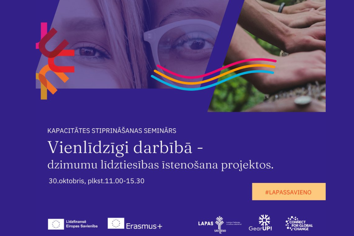 2025. gada 30. oktobrī aicinām piedalīties LAPAS otrajā kapacitātes stiprināšanas seminārā “Vienlīdzīgi darbībā – dzimumu līdztiesības īstenošanas projektos”. Semināra uzdevums būs sniegt visaptverošu ieskatu un zināšanas dzimumu līdztiesības jomā, kuras pielietot esošo un nākotnes projektu plānošanā un realizēšanā.